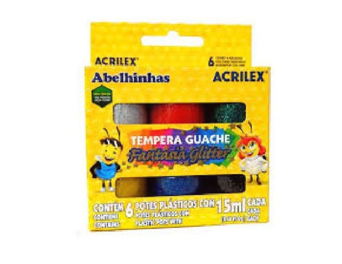 Tinta Guache 6 Cores 15ml Glitter - Acrilex