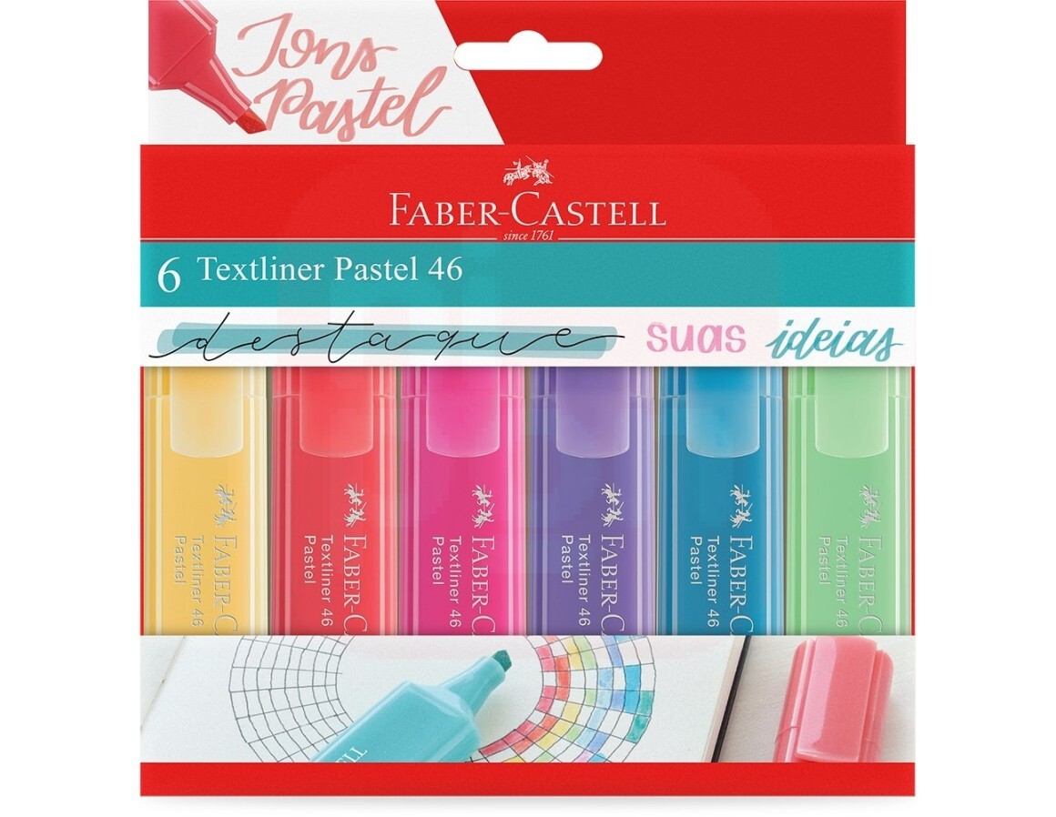 2. Marca Texto 6 Cores Pastel TEXTLINER 46 - Faber-Castell